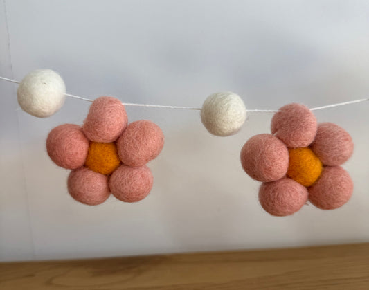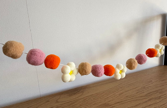 Floral bunting - Pink/ Orange Flower Pom Pom