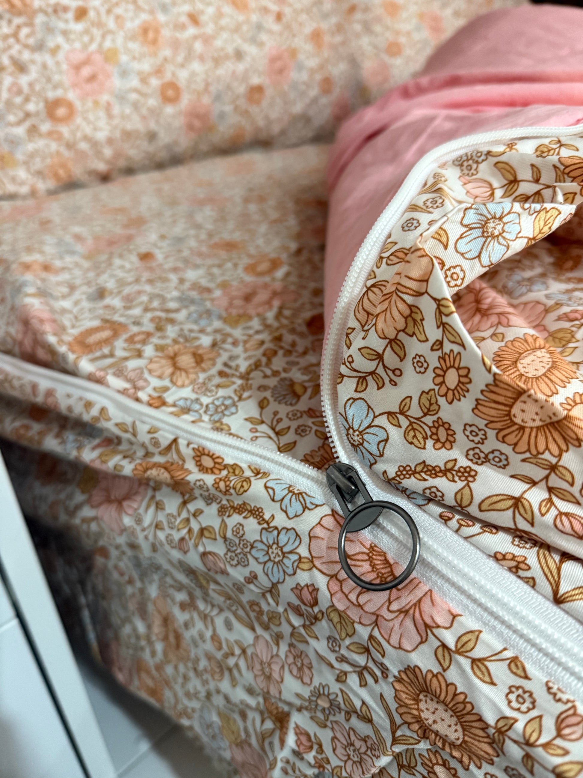 Wrapped in the soft floral beauty of our Amali design, bursting with pastel hues and a sprinkle of vintage charm. It’s the kind of space where fairy tales are read, sweet dreams are had, and every night feels like a sleepover in a flower-filled garden.
