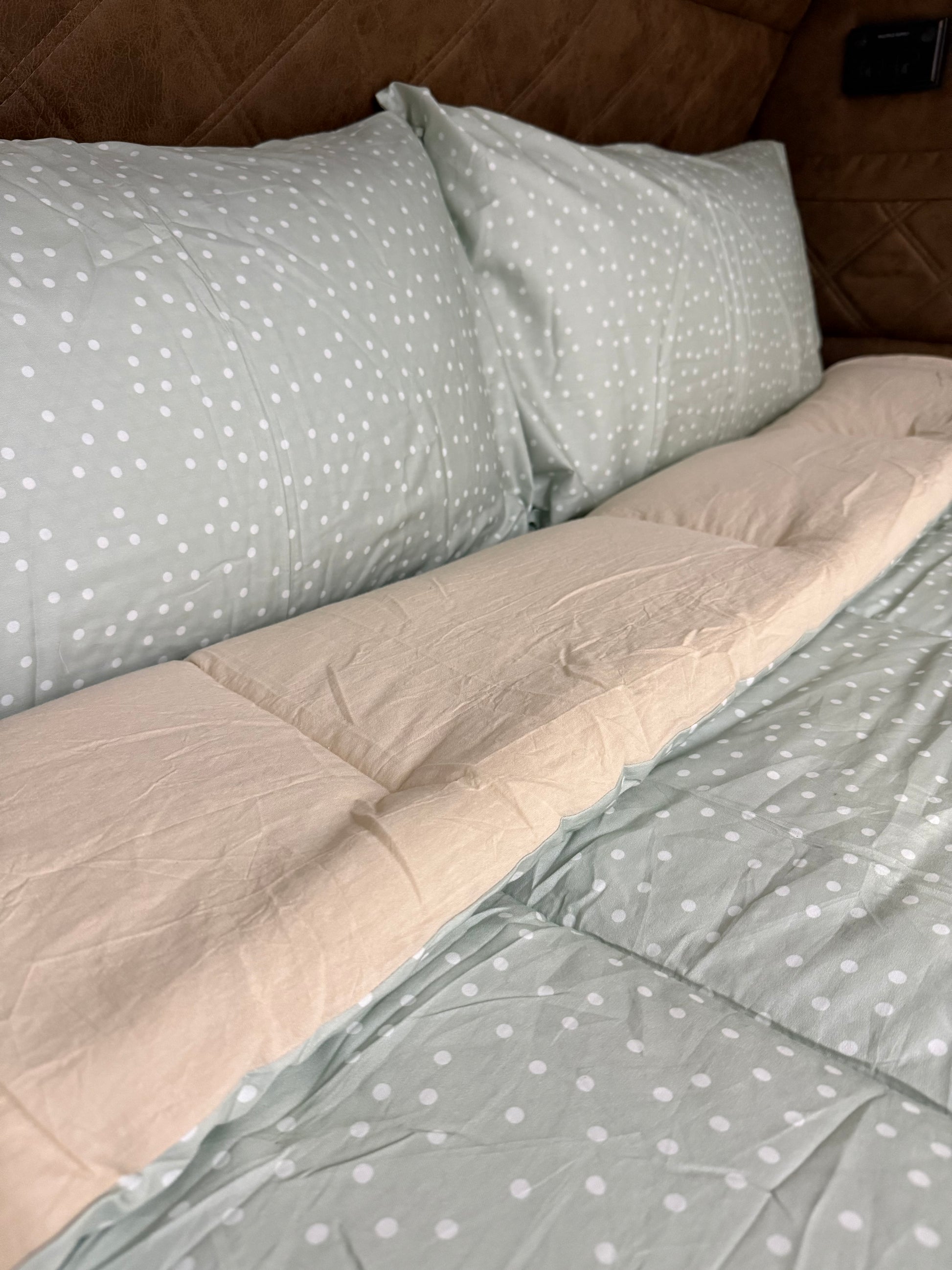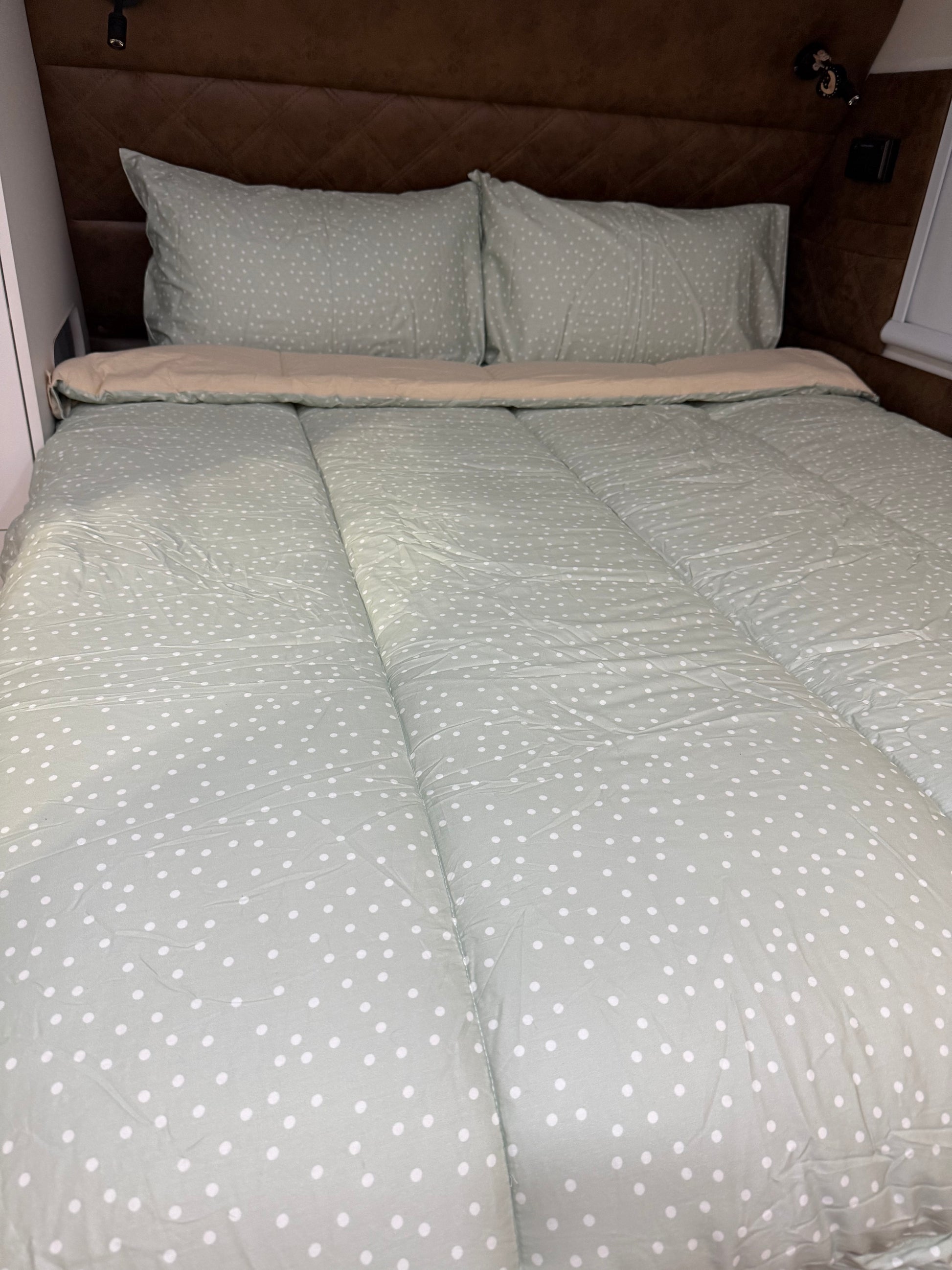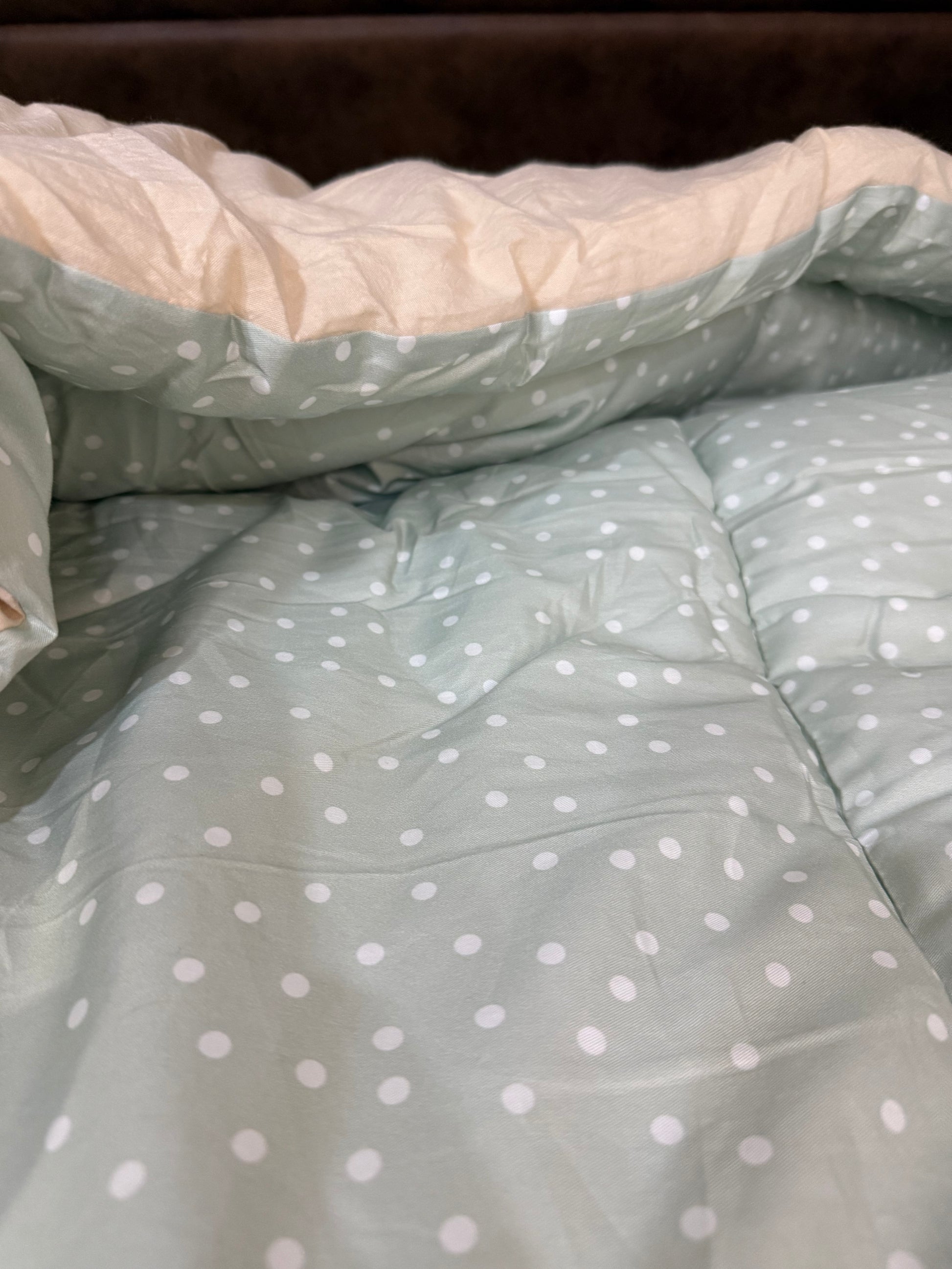These should fit “normal” beds at home as well, but as always double check your measurements, to be sure, but we have found that so far whatever we have put the bedding on works size wise, which is great!