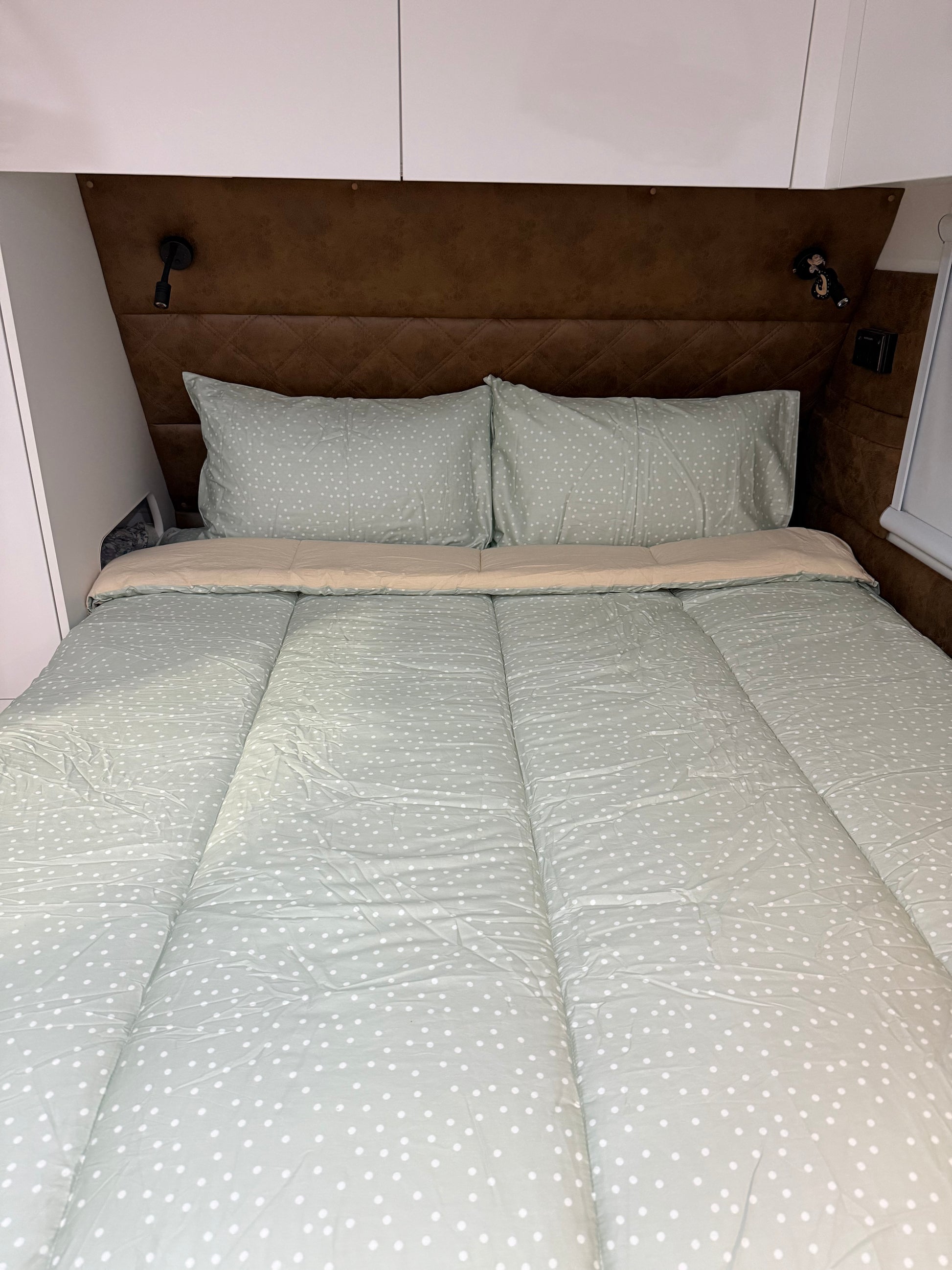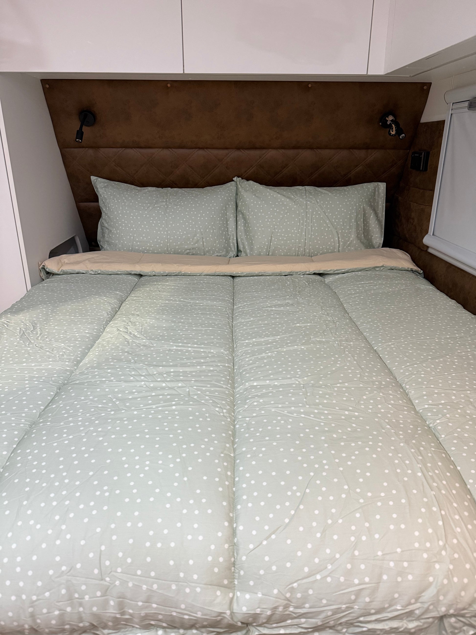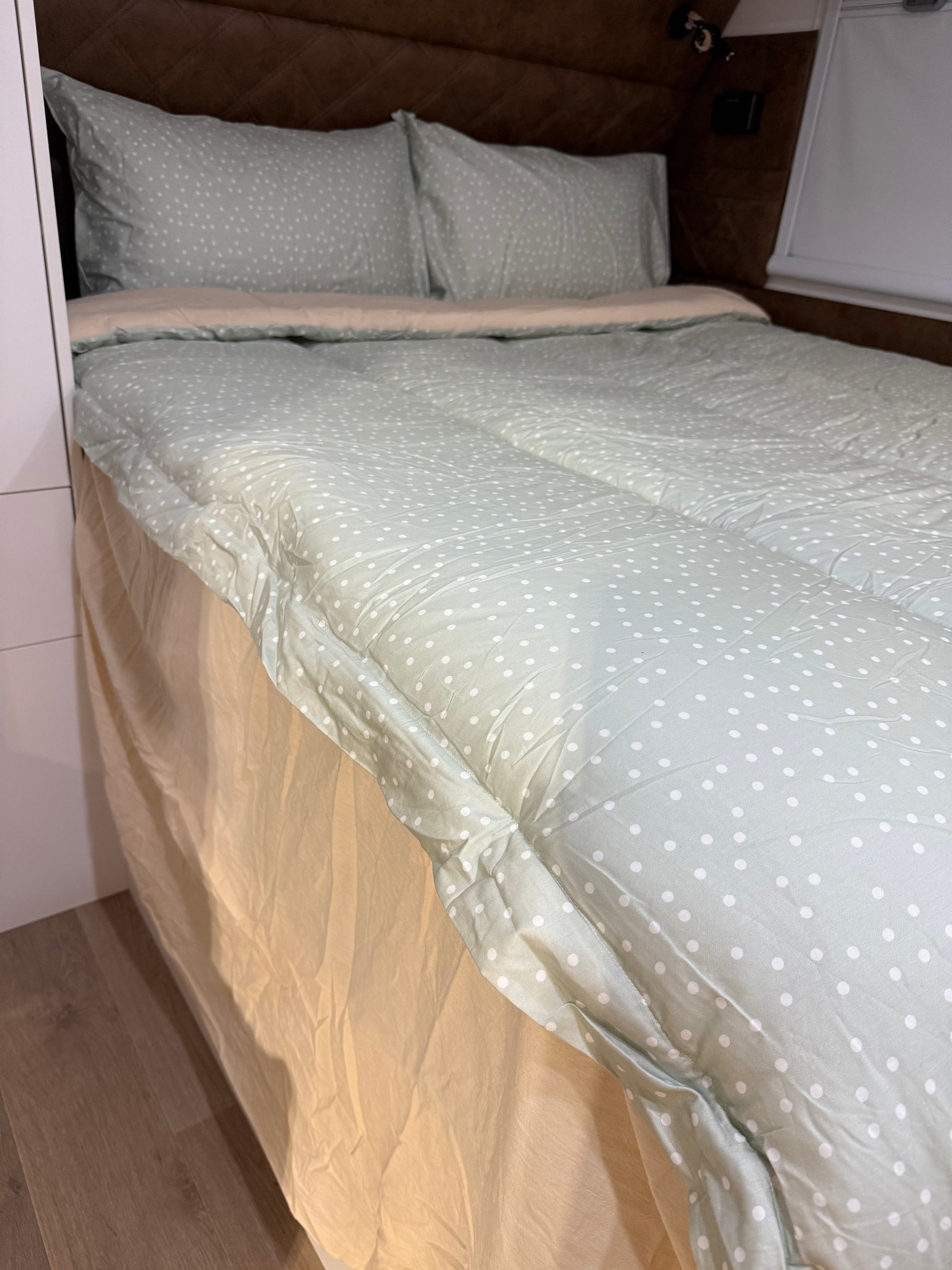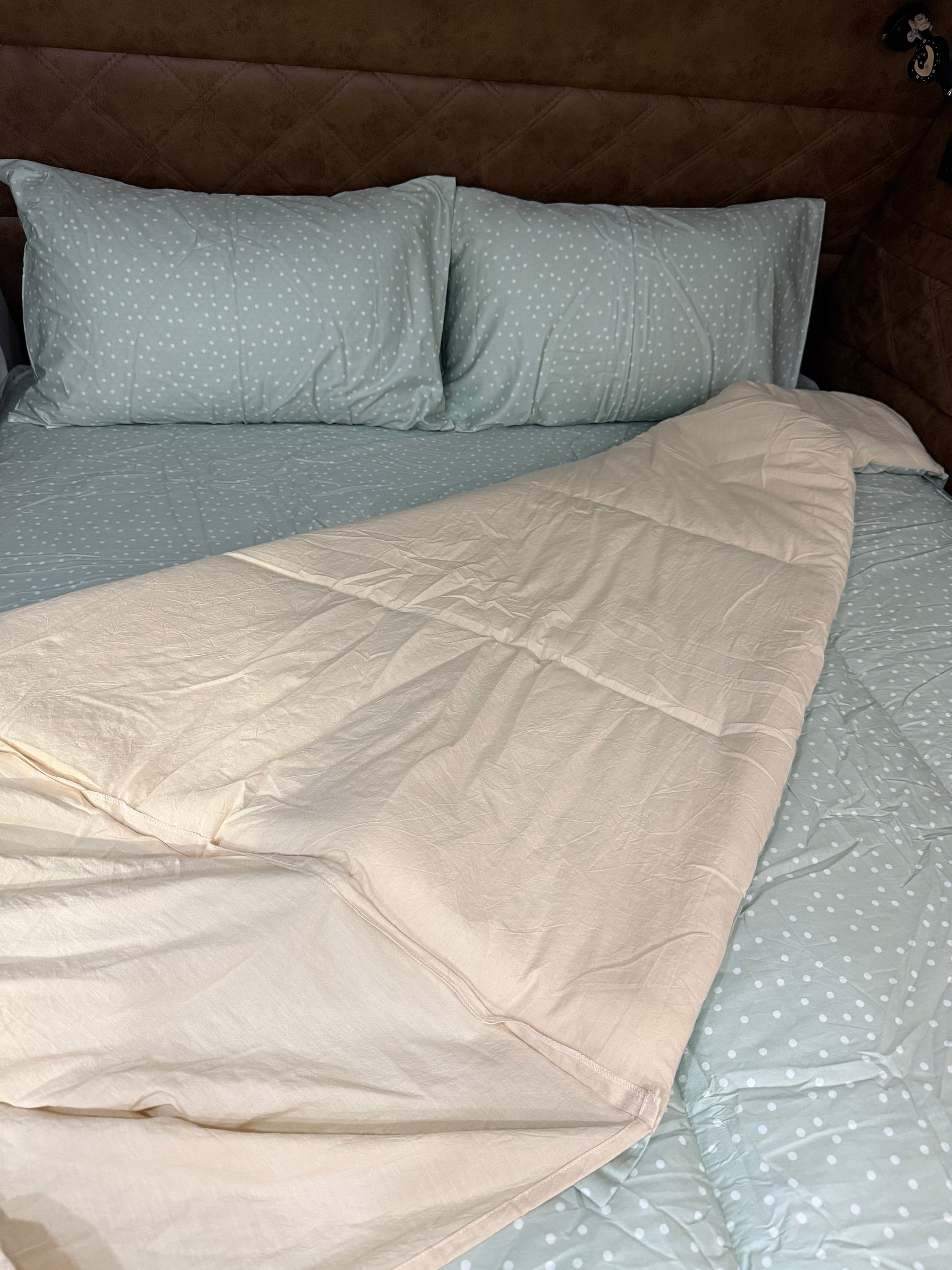 These should fit “normal” beds at home as well, but as always double check your measurements, to be sure, but we have found that so far whatever we have put the bedding on works size wise, which is great!