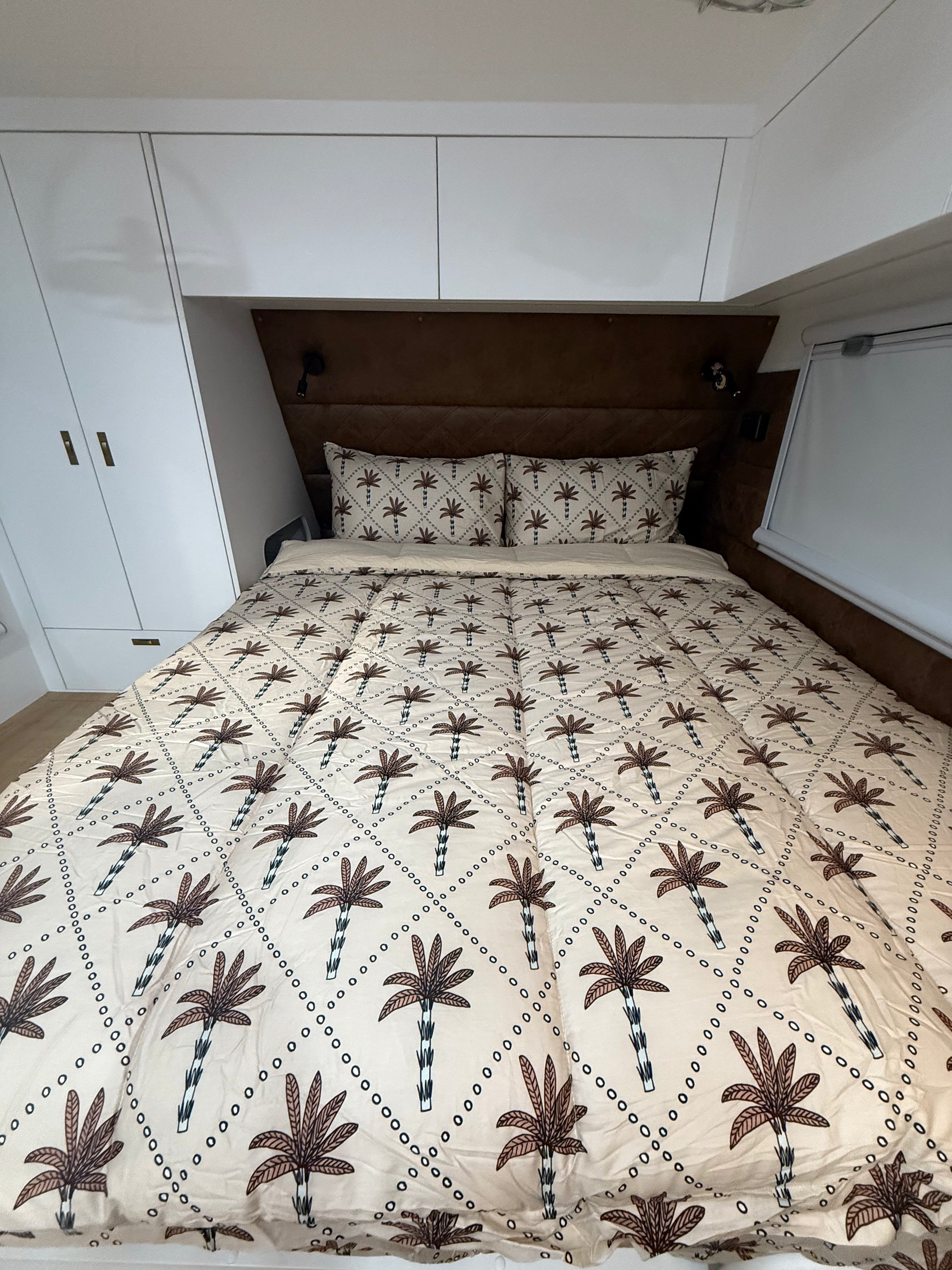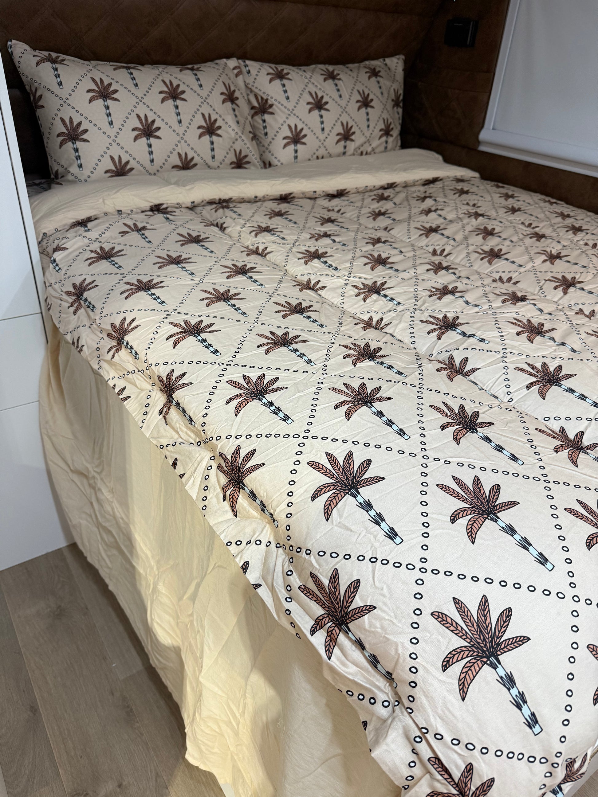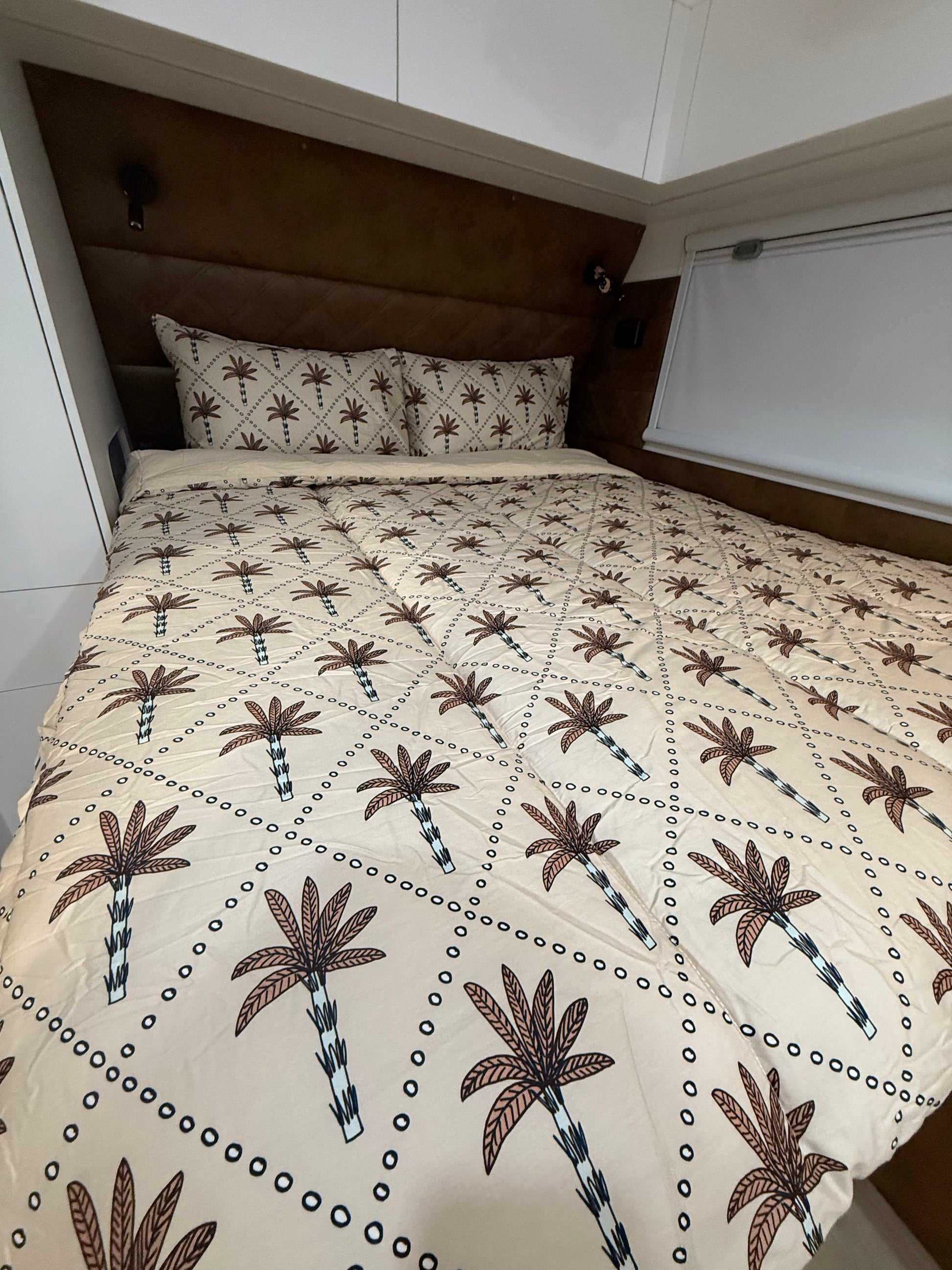 This playful print features hand-drawn palm trees dancing across a soft, sandy backdrop, giving your caravan a little slice of paradise. Perfect for mini adventurers who dream of island getaways, Lennox brings sunshine and style to every sleep. It’s comfy, cool, and oh-so-easy to make — just tuck, zip and let the good times roll!