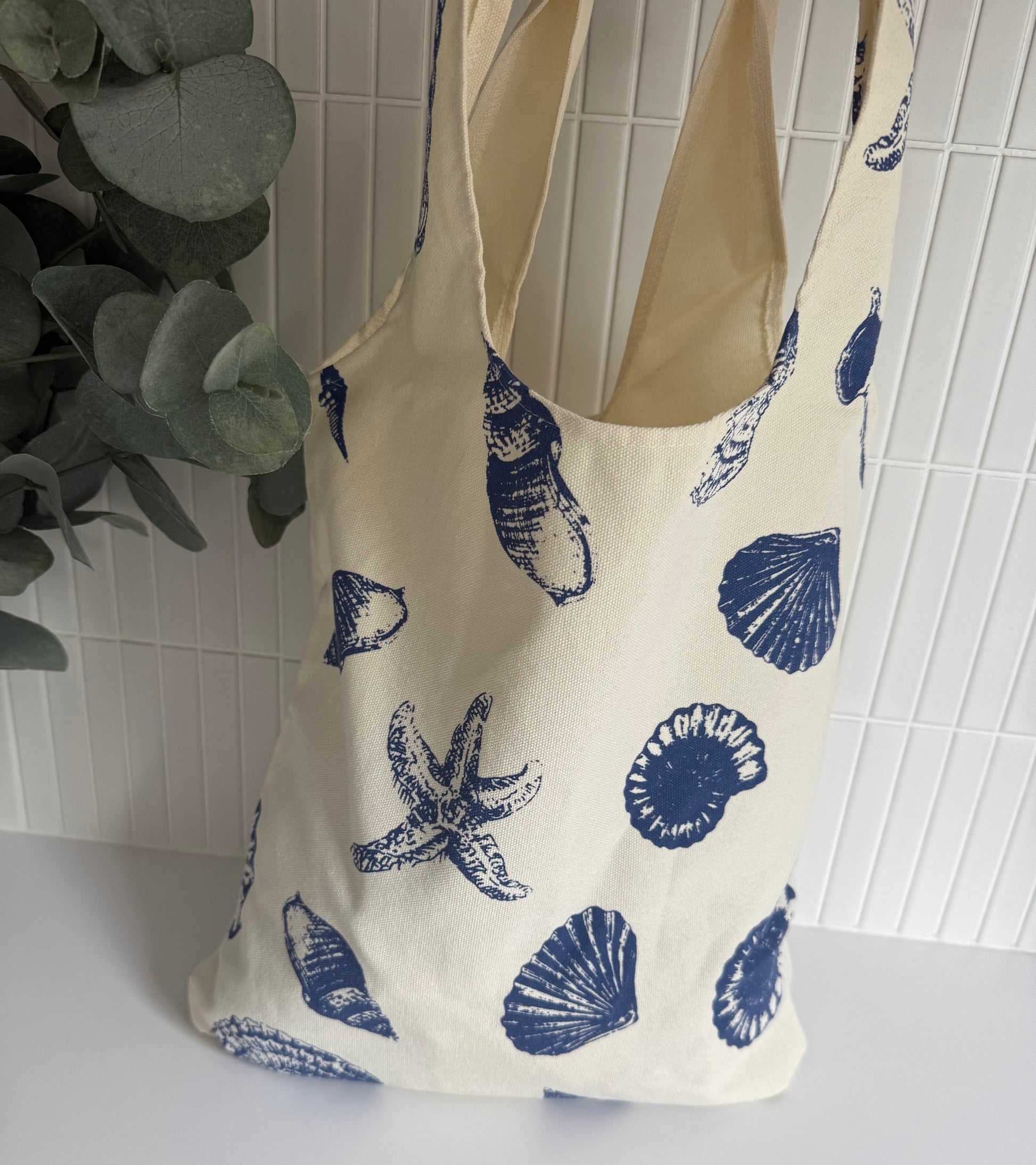 Bring beachside vibes wherever you go with this gorgeous shell-print tote! Featuring a beautiful navy sea-inspired pattern on natural cotton canvas, it’s perfect for sunny market strolls, beach days, or spontaneous road trips.