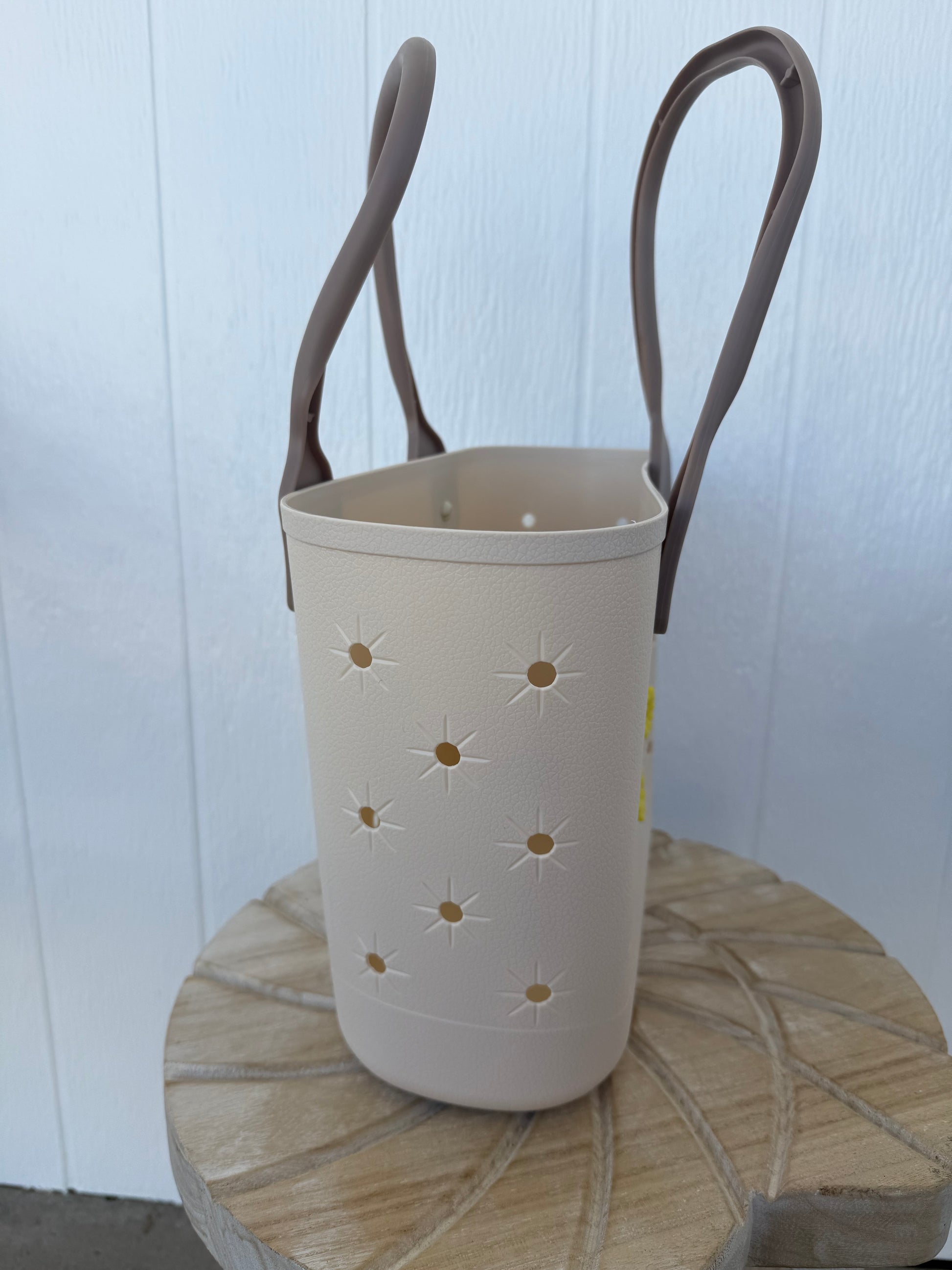 Meet the bag that’s as versatile as your travels! With its lightweight design, sturdy handles, and playful cut-out detailing (hello sunshine vibes ☀️🌼), this petite tote is perfect for beach days, market strolls, caravan adventures or just keeping life organised on the go.